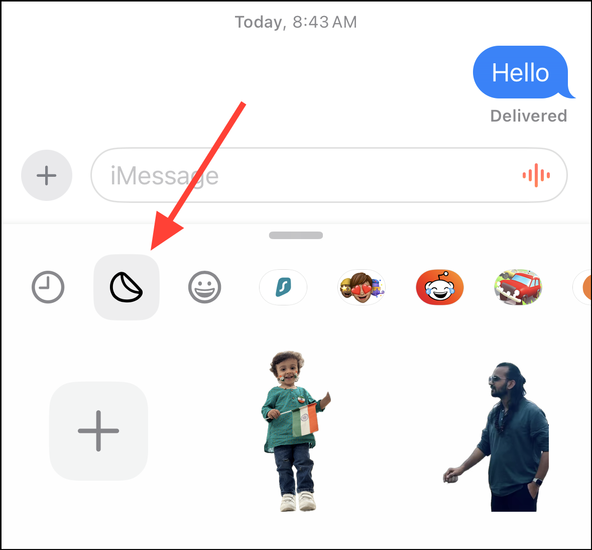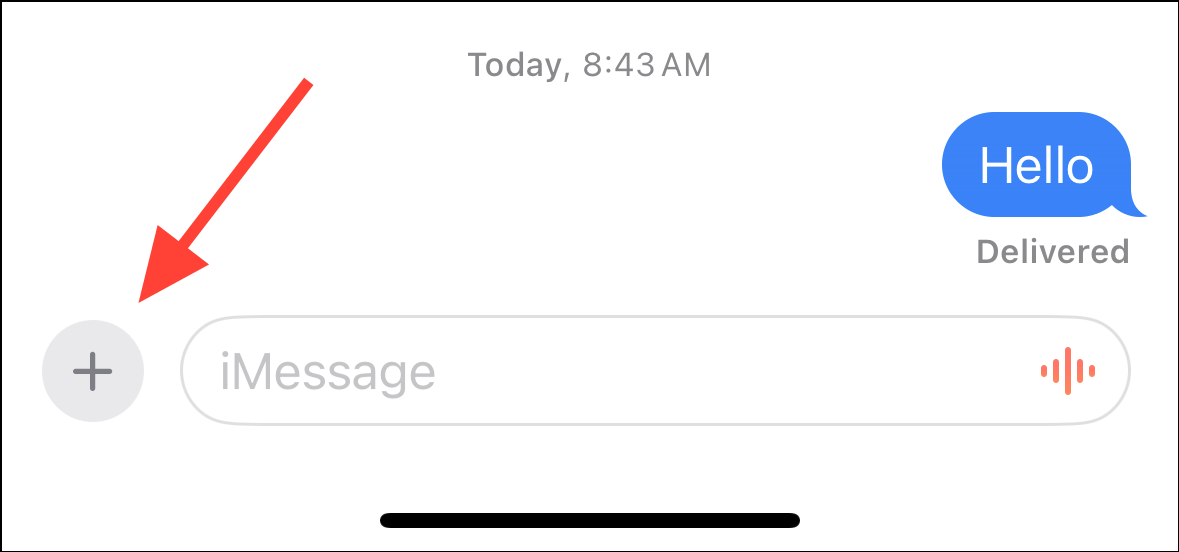 Step 2: Start a new conversation or open an existing one. Tap the '+' icon next to the text input field to access the iMessage app drawer.
