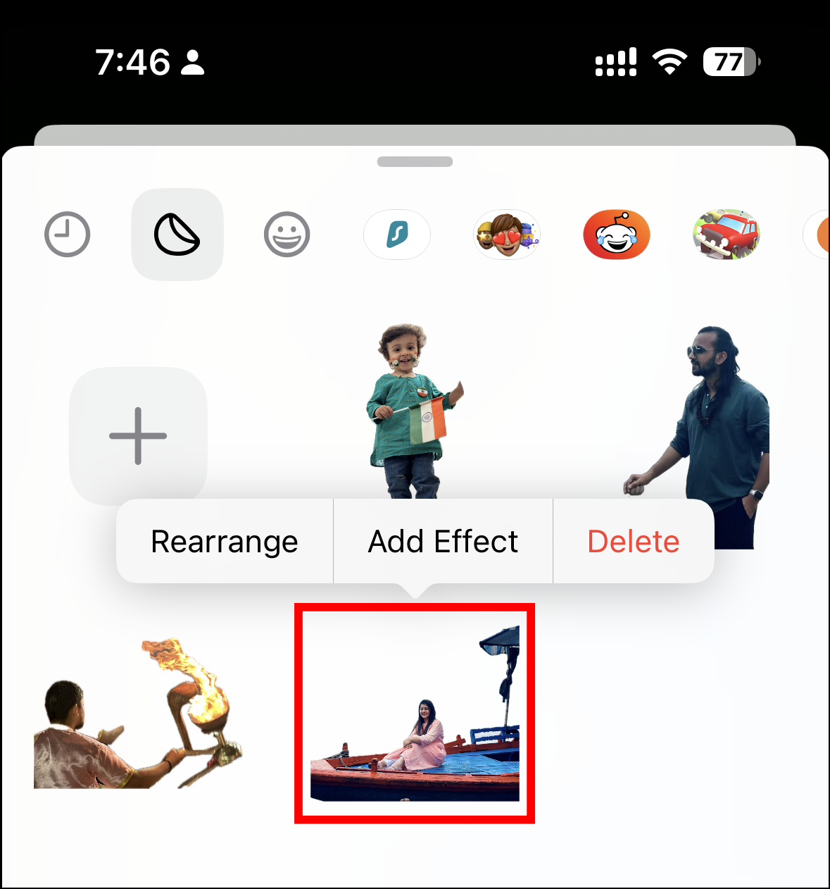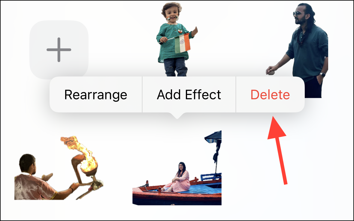 Step 5: Locate the live sticker you want to remove. Press and hold it until it enlarges slightly and a tooltip menu appears.