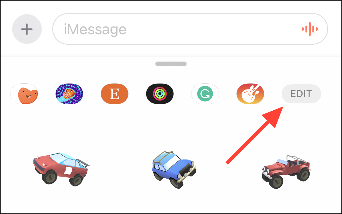 Step 1: In the stickers bar within the Messages app, swipe all the way to the right and tap the Edit button.