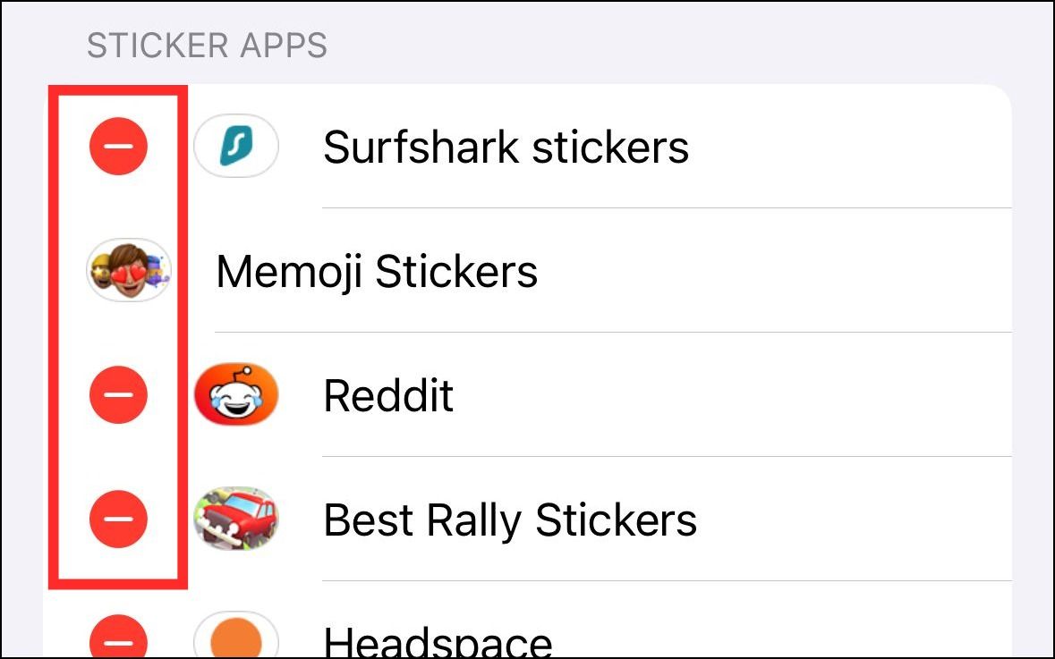 Step 3: Find the sticker app you want to delete and tap the red '-' button next to it.