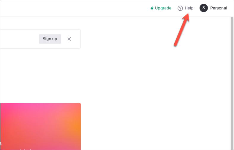 Then, click the ‘Help’ option in the top-right corner of the screen.
