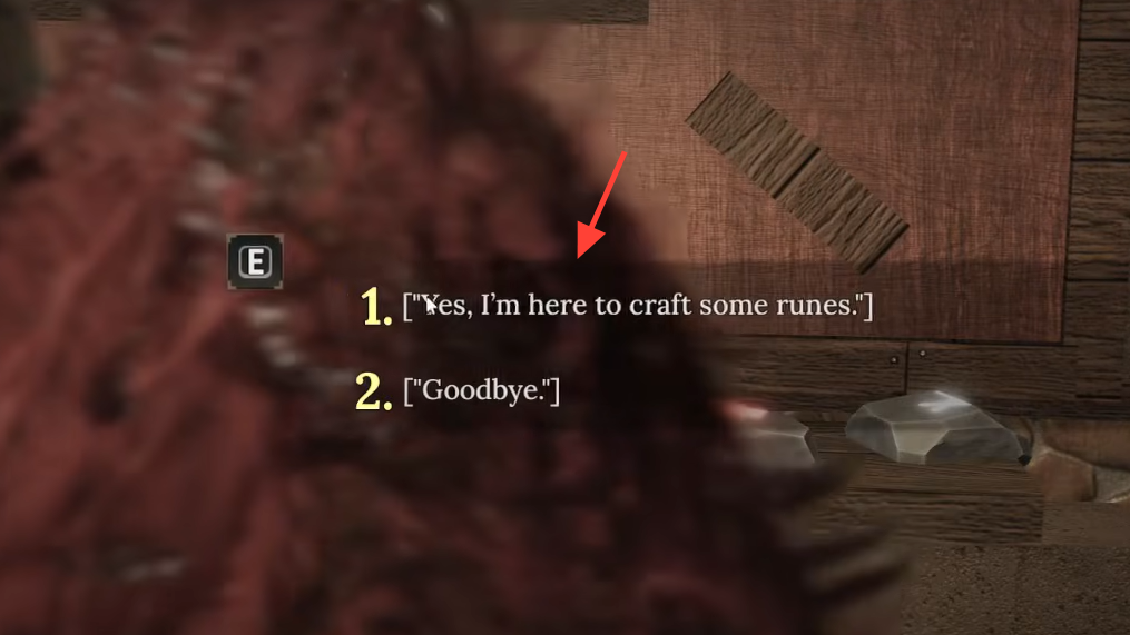 Step 2: Press E to talk to the RuneMaker, then choose the dialogue option “Yes, I am here to craft some runes.” This opens the rune management screen.