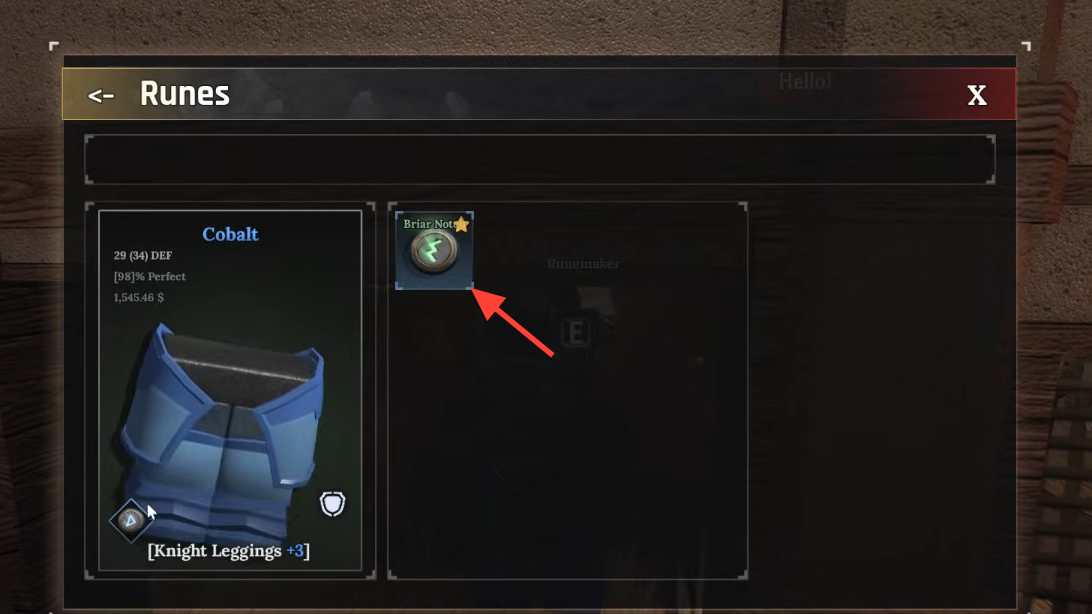 Step 1: Go to the RuneMaker NPC in town and walk up close enough for the interaction prompt to appear.