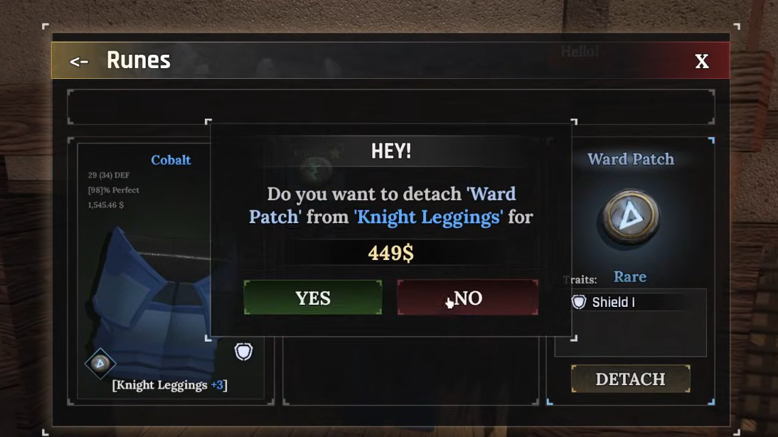 Step 3: Before confirming a detachment, compare the fee to what you’d gain by selling the item with its rune. If selling yields a big gold gain and the rune isn’t irreplaceable, walk away from the removal.