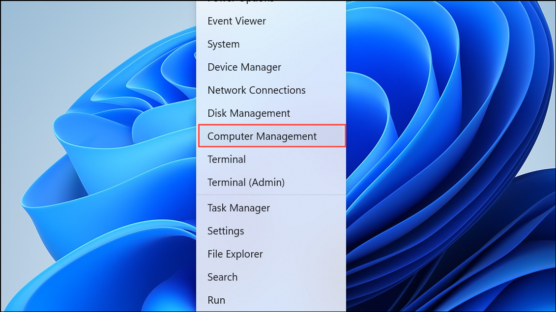 Step 1: Open the Computer Management tool by right-clicking the Start button on the taskbar and selecting Computer Management from the menu. Alternatively, press Windows key + X and select Computer Management from the list.