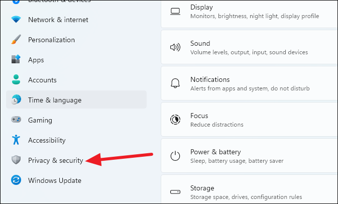 Step 1: In the Settings app, select 'Privacy & Security' from the left sidebar.