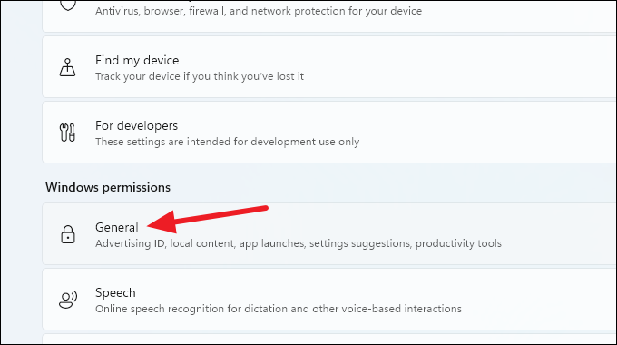 Step 2: Click on 'General' in the right pane.