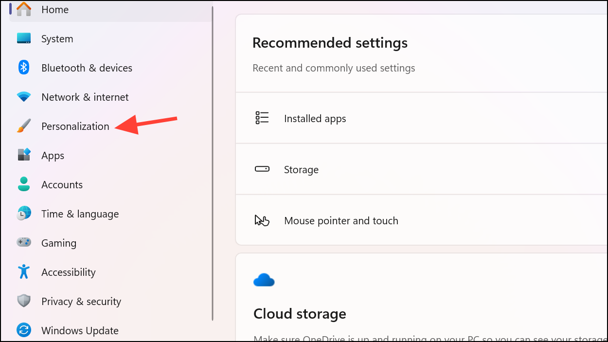 Step 2: In the Settings window, select Personalization from the options in the left-hand menu.