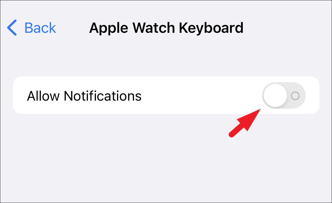 On the next screen, tap on the toggle switch following the ‘Allow Notifications’ tile to bring it to the ‘Off’ position. That’s it, you will no longer receive notifications on the connected iPhone to input text on your Apple Watch.