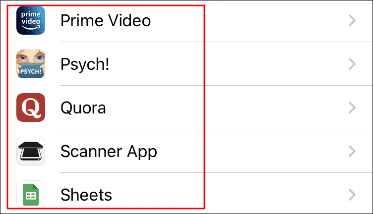 Scroll down in the ‘Settings’ main screen and tap on the app for which you want to disable the ‘Background App Refresh’ feature.