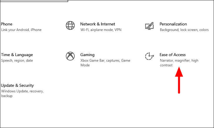 To disable ‘Mouse Key’ settings, press WINDOWS + I to launch the system ‘Settings’, and then select ‘Ease of Access’ from the list of options. You can also launch the system ‘Settings’ from the ‘Start Menu’.