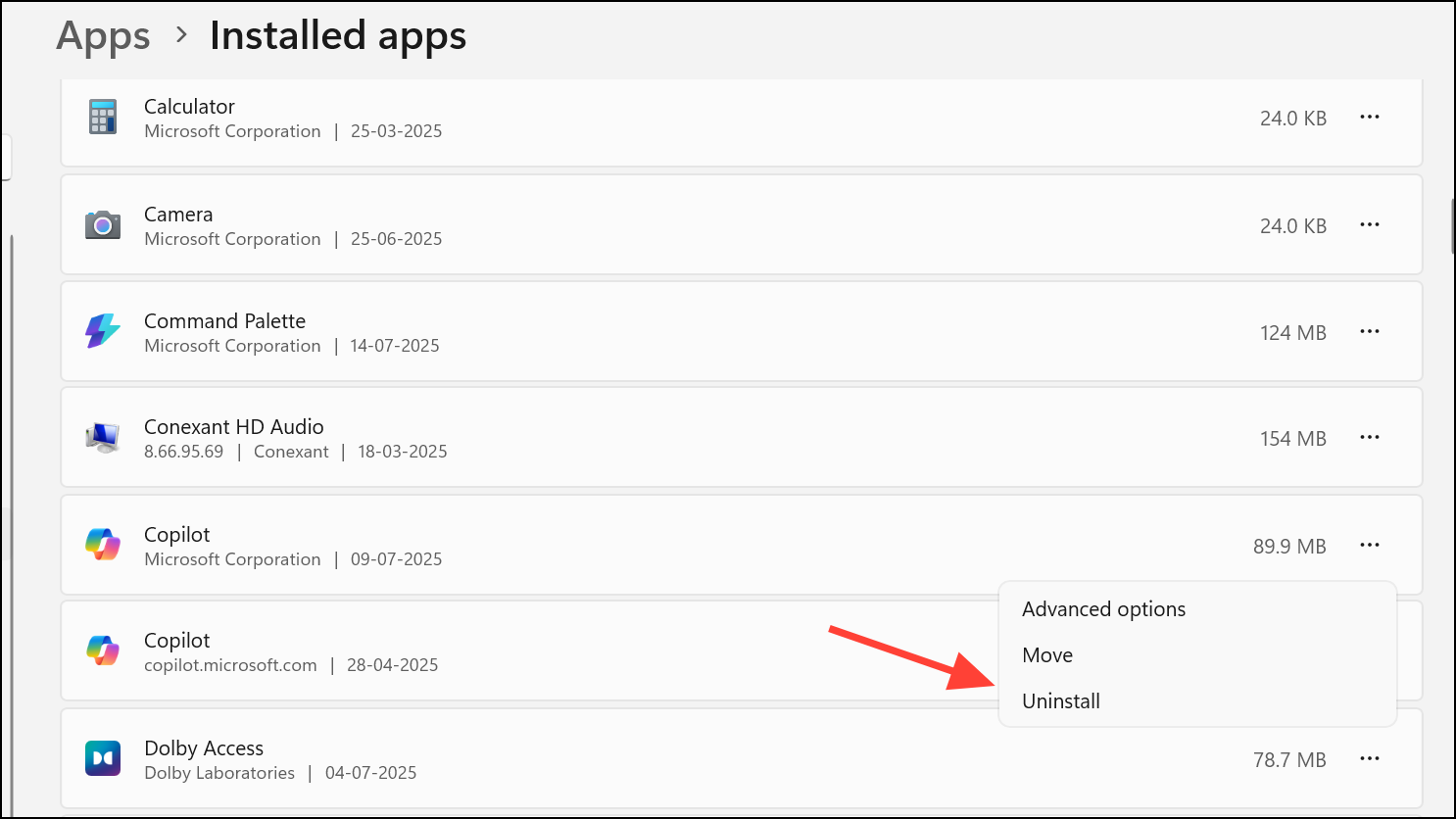 Uninstall Copilot via Windows Settings