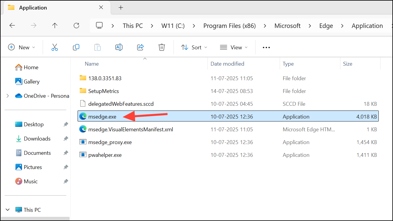 Step 1: Navigate to C:\Program Files (x86)\Microsoft\Edge\Application\msedge.exe in File Explorer.