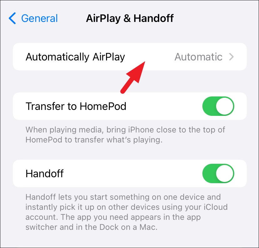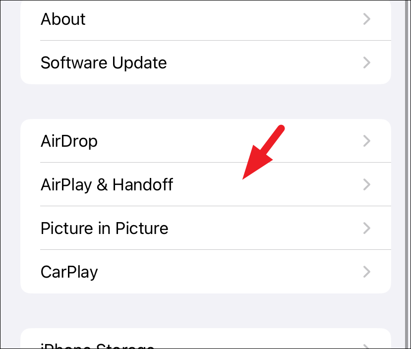 - On the subsequent screen, tap 'AirPlay & Handoff' to continue.