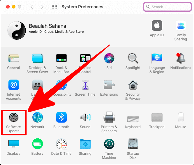 Click on ‘Software Update’ in the system preferences window.