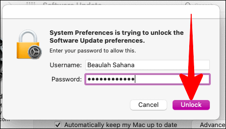 Now, enter your Mac password and then click on ‘Unlock’ to proceed.