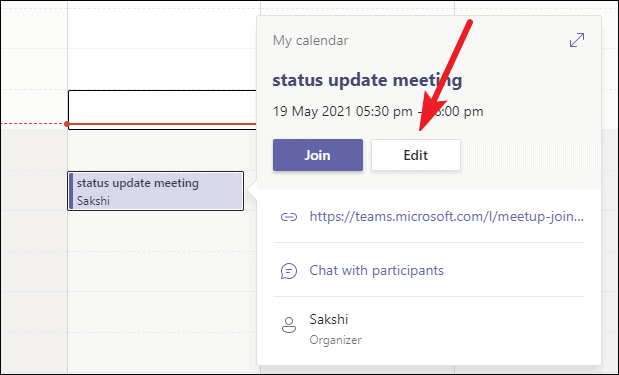 You can disable the camera for meetings you’ve scheduled and already sent the invite for. To disable the camera before a meeting, go to your ‘Calendar’ and click the meeting you want to change this setting for.