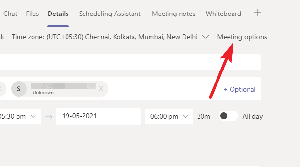 The meeting details screen will open. Go to ‘Meeting options’.