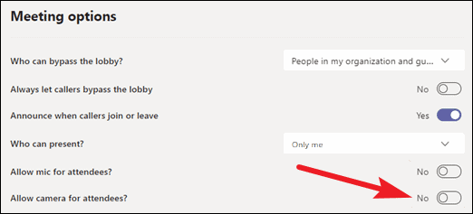 Disabling Camera for Meeting Attendees
