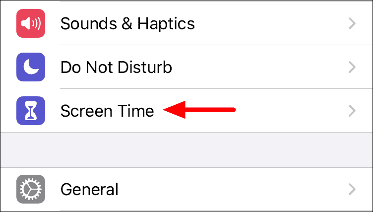 Next, locate and select the ‘Screen Time’ setting from the list of options.