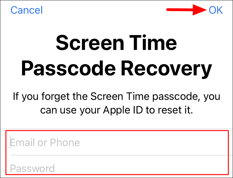 After you have entered the passcode twice, you will be asked to enter your Apple ID and password which will come in handy, in case you forget the passcode. Once you have entered the required details in the provided section, tap on ‘OK’ at the top-right corner.