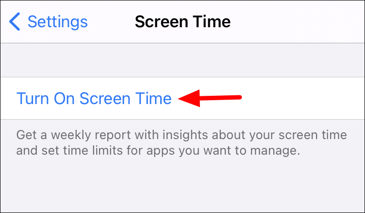 If the ‘Screen Time’ setting is disabled, you will have to turn it on by tapping on the ‘Turn On Screen Time’ option at the top. In case, it is already enabled, you wouldn’t find the option and can simply move to the next step.