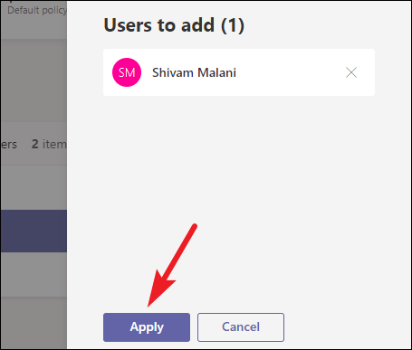 Then, click on the ‘Apply’ button. The custom policy will now be applicable for these users, and they won’t have access to the private ‘Chat’ tab in Microsoft Teams any longer.