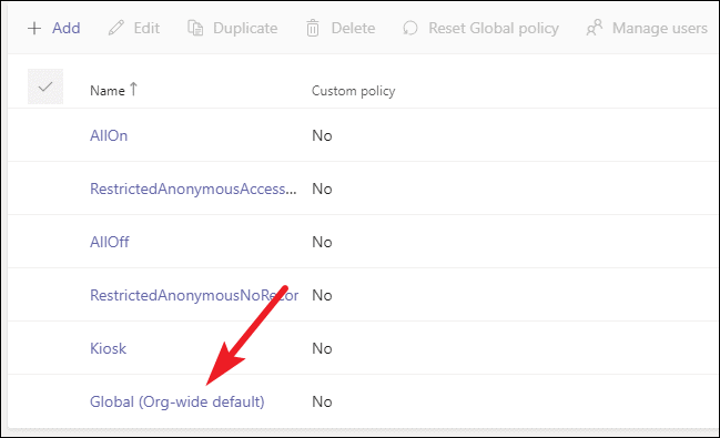 The page for meeting policies will open. Go to ‘Global (Org-wide default)’.