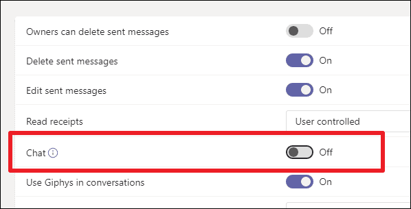 Note: Only people with admin access can alter these settings and disable chat in Microsoft Teams.