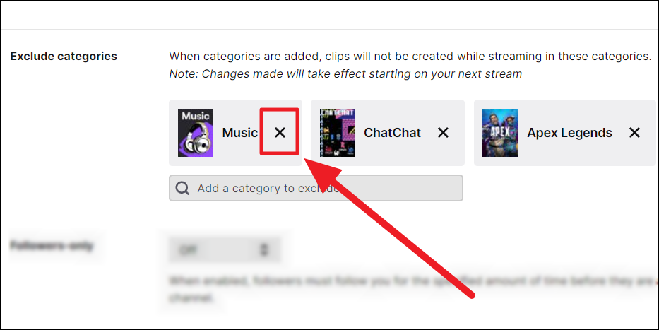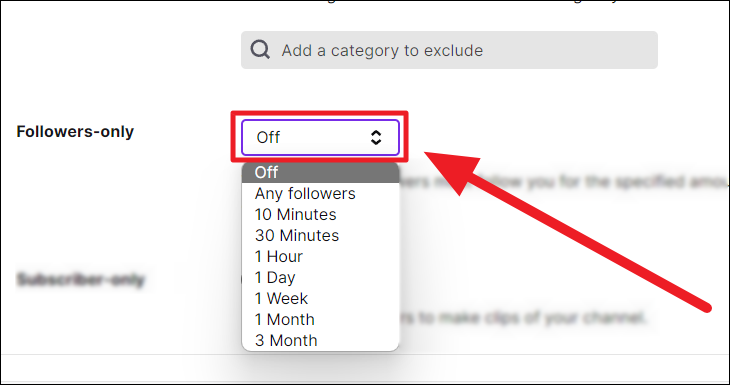 Click the ‘Off’ drop-down box next to ‘Followers only’ under ‘Clip Settings’. Choose the duration a viewer must follow you to be permitted to make clips of your stream.