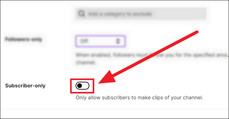 Click the toggle next to the ‘Subscriber-only’ option below ‘Clip Settings’ to turn it purple.