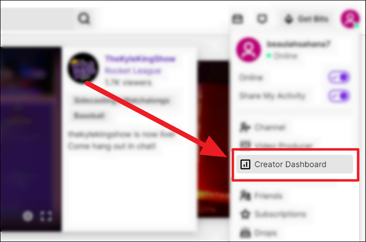 Select ‘Creator Dashboard’ from the drop-down menu.