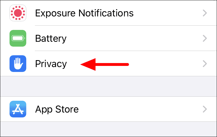 In phone settings, scroll down and tap on ‘Privacy’ from the list.