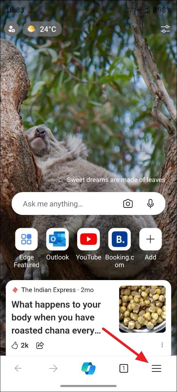 Now, you have successfully disabled Copilot in the Edge app on your phone. Relaunch the browse to start using it without Copilot.