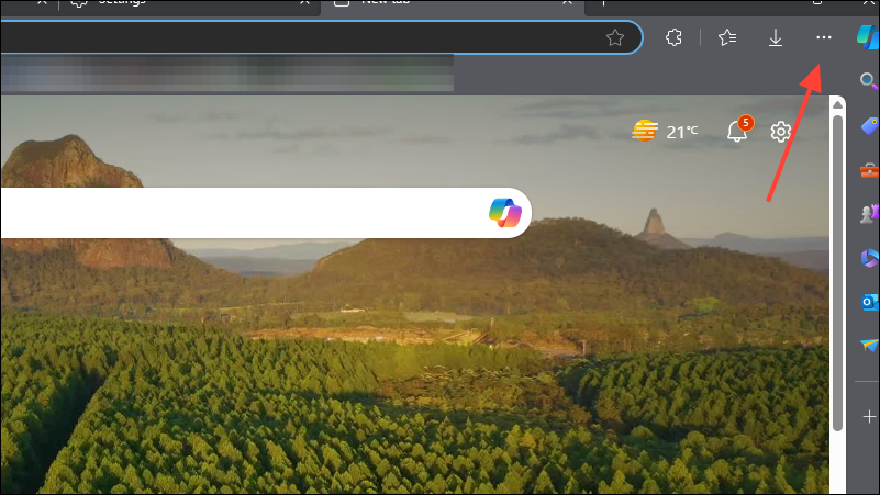 - Open the Edge browser and click on the 'three dots' in the top right corner.
