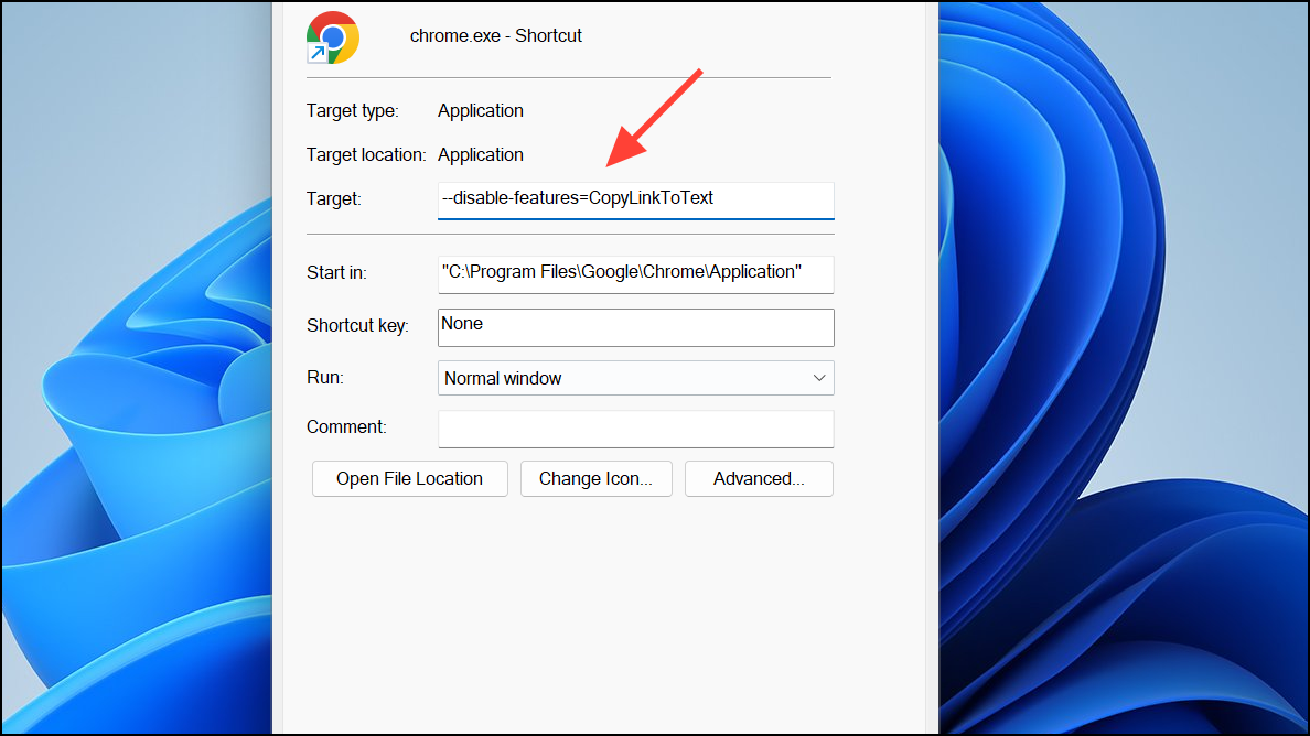 Step 2: If the flag is unavailable, try editing your Chrome shortcut. Right-click the Chrome shortcut, select Properties, and in the Target field, append the following after the closing quote: