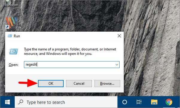 Search for Run in the Start Menu or press WINDOWS + R to open it. Type ‘regedit’ in the text box and press ENTER or click on ‘OK’ at the bottom.