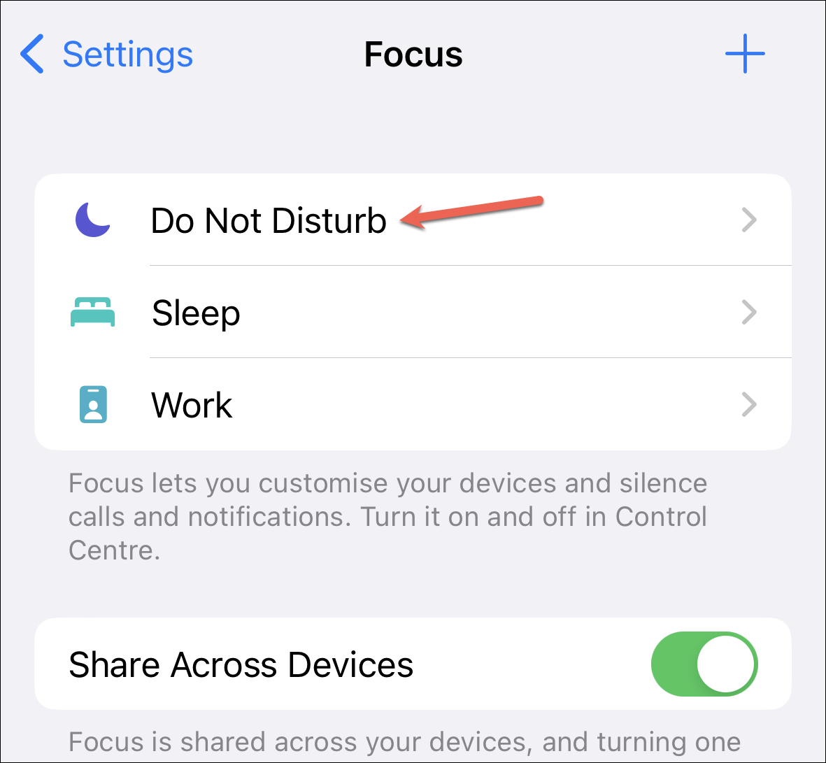 Then, tap the ‘DND’ icon (crescent moon) from the Focus tile in the Control Centre to disable it.