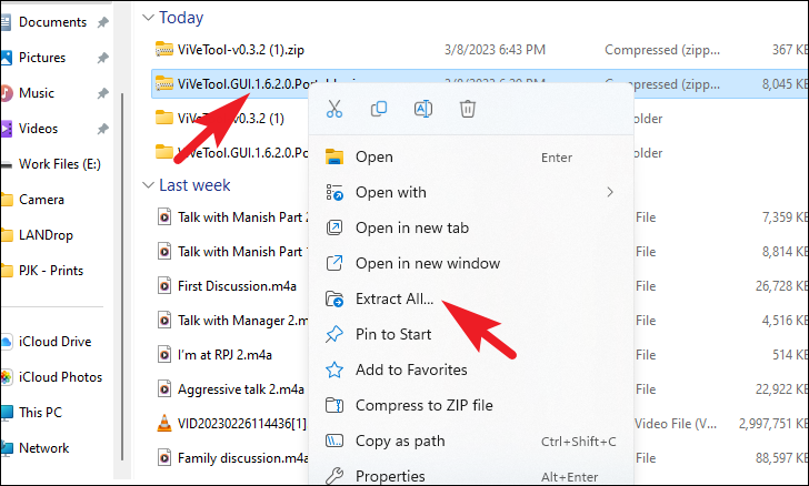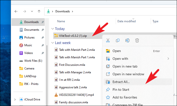 Step 2: Once the download is complete, go to your Downloads folder. Right-click on the ZIP file and select Extract All from the context menu.