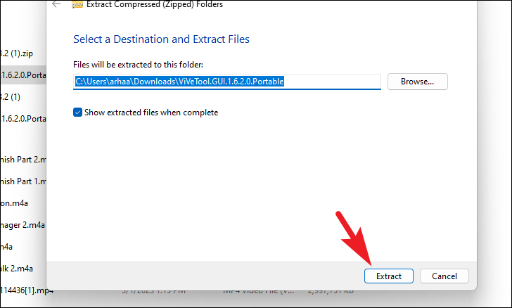 Step 3: In the extraction window, click the Extract button to unzip the contents to the specified location.