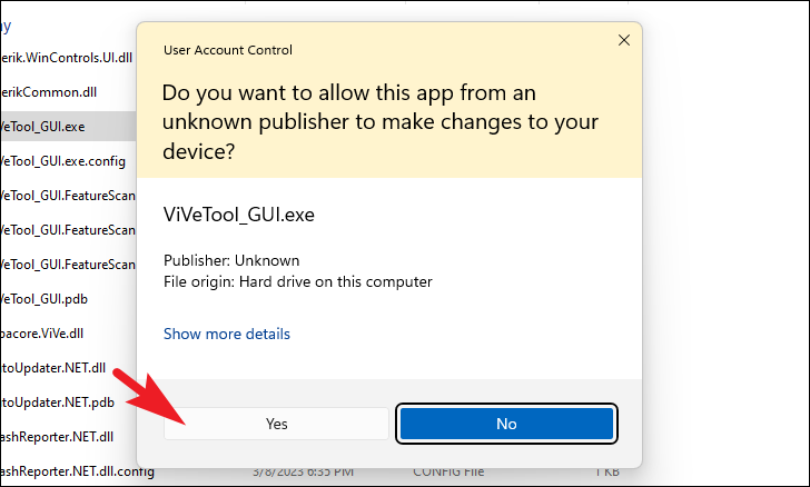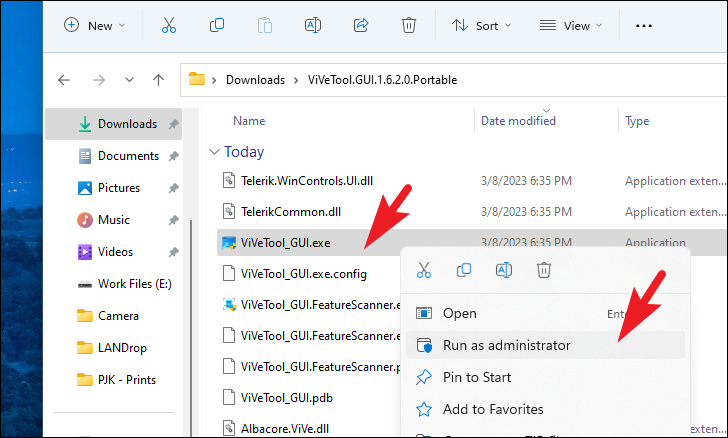 Step 4: Open the extracted folder, locate the ViveTool_GUI.exe file, right-click on it, and choose Run as administrator.