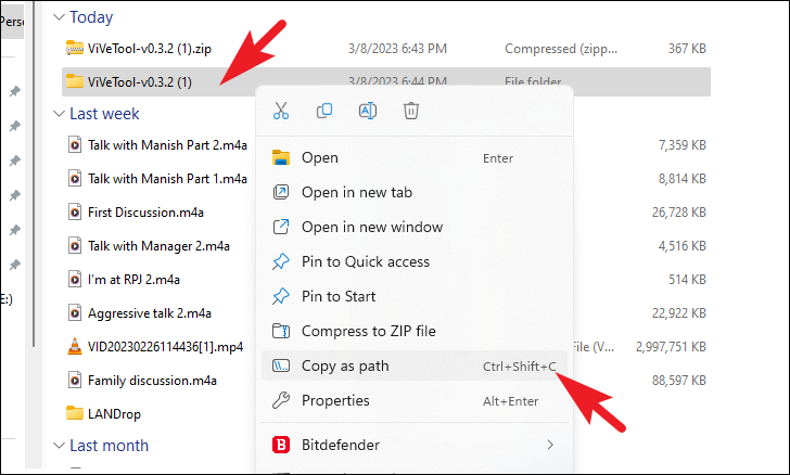 Step 4: After extraction, locate the extracted folder, right-click on it, and choose Copy as path. This copies the folder path to your clipboard.