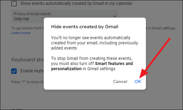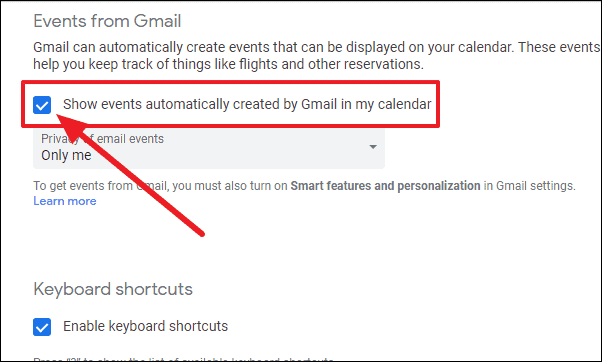 Now, untick the checkbox beside ‘Show events automatically created by Gmail in my calendar’. By default, this option is enabled and needs to be manually switched off to stop auto-calendar event creation.