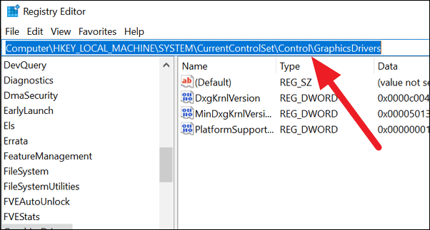 HKEY_LOCAL_MACHINE\SYSTEM\CurrentControlSet\Control\GraphicsDrivers