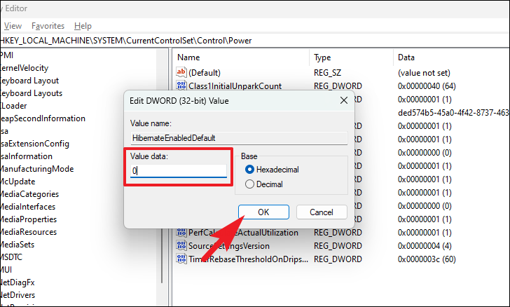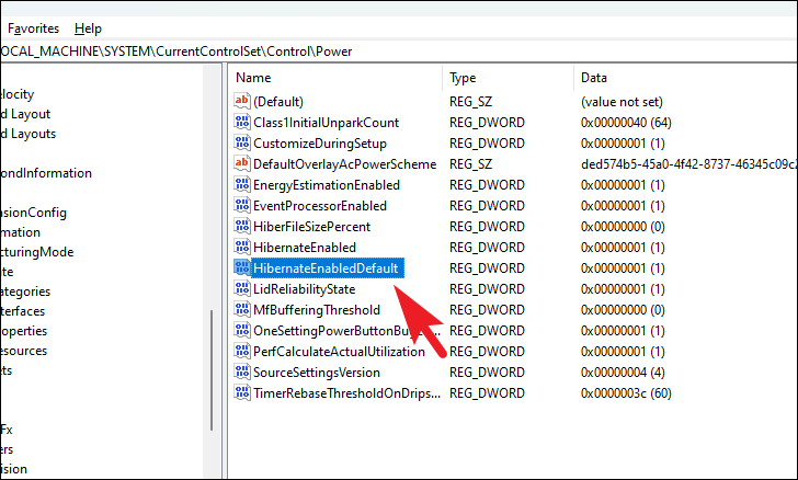 Step 4: In the right pane, locate and double-click on the HibernateEnabledDefault DWORD value.