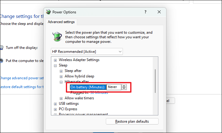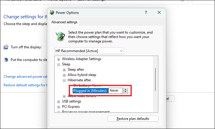 You can also turn off hibernation through the Power Plan settings in the Control Panel, which allows you to configure various power options.
