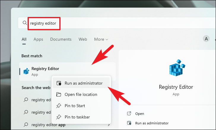 Step 1: Open the Start menu and type Registry Editor. Click on the Registry Editor app in the search results.