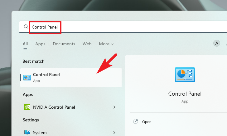 Step 1: Open the Start menu and type Control Panel in the search bar. Click on the Control Panel app from the search results.
