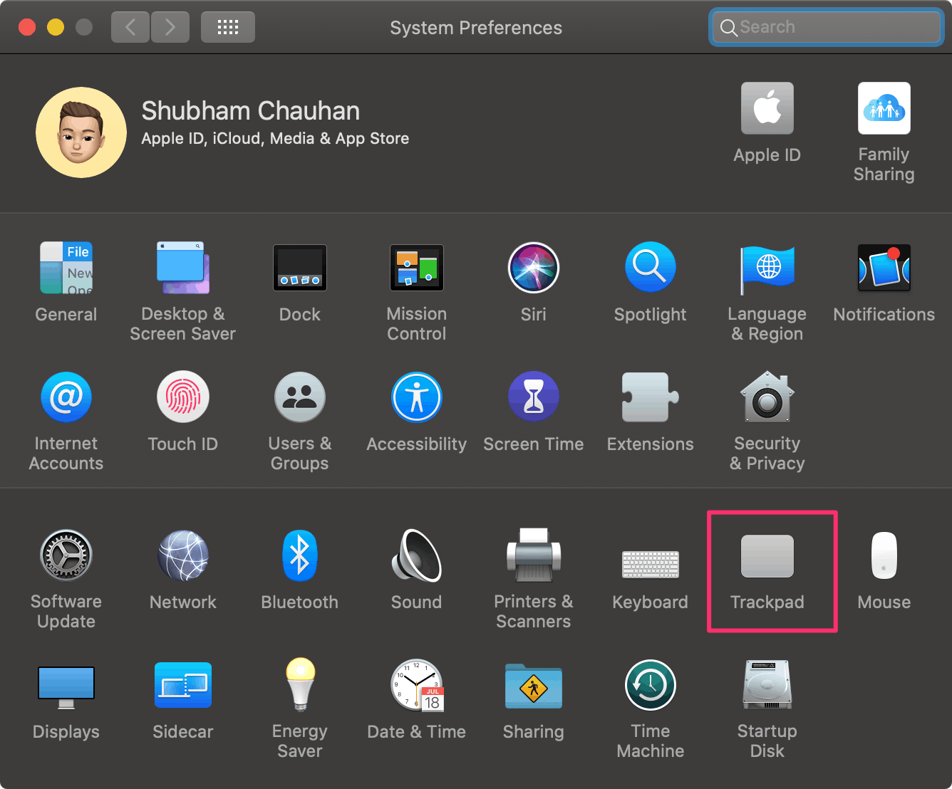 Once the system preference launches, click on the ‘Trackpad’.