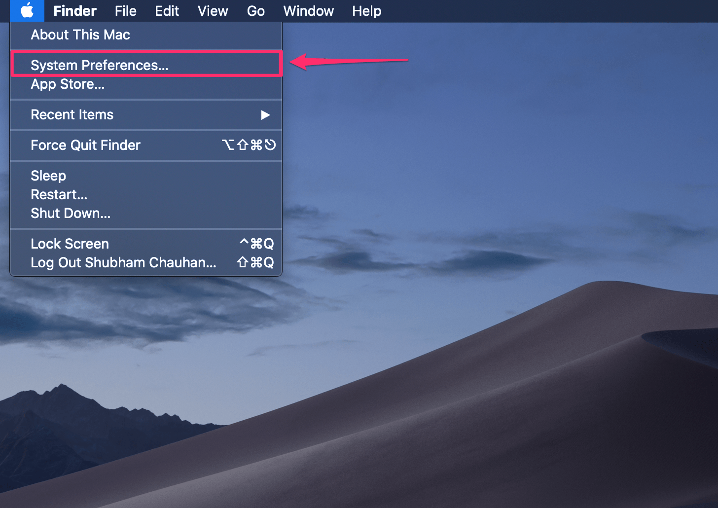 Click on the 🍎 Menu on the top-left corner of the screen and go to ‘System Preferences’.